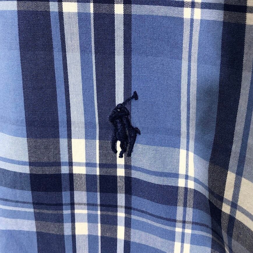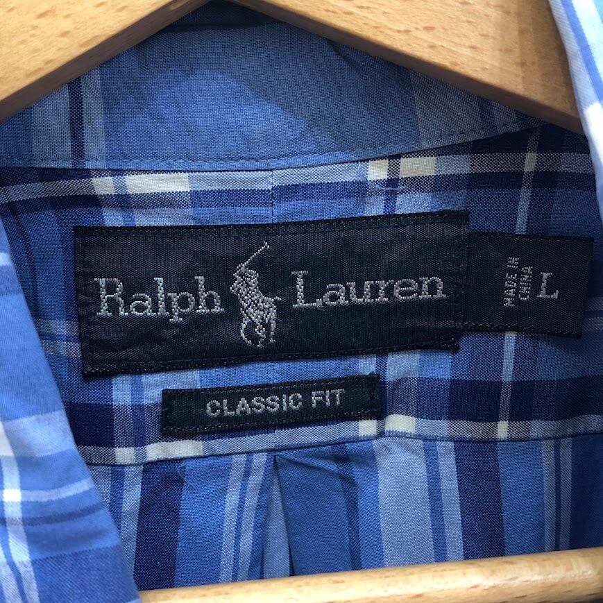90's vintage 90年代 ヴィンテージ Ralph Lauren classic FIT チェック ポニー刺繍 長袖 シャツ ボタンダウン ワンポイント刺繡 オーバーサイズ ビックシルエット CHINA製 Lサイズ ブルー ライトブルー ホワイト | OASISCLOTHING 海外古着屋【公式】通販サイト