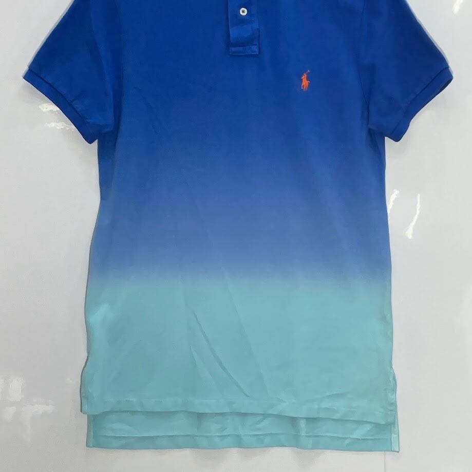 商品名:POLO RALPH LAUREN/ポロラルフローレン グラデーションカラー ポニー刺繡 半袖 ポロシャツ ワンポイント刺繡 CHINA製 メンズ M ブルー