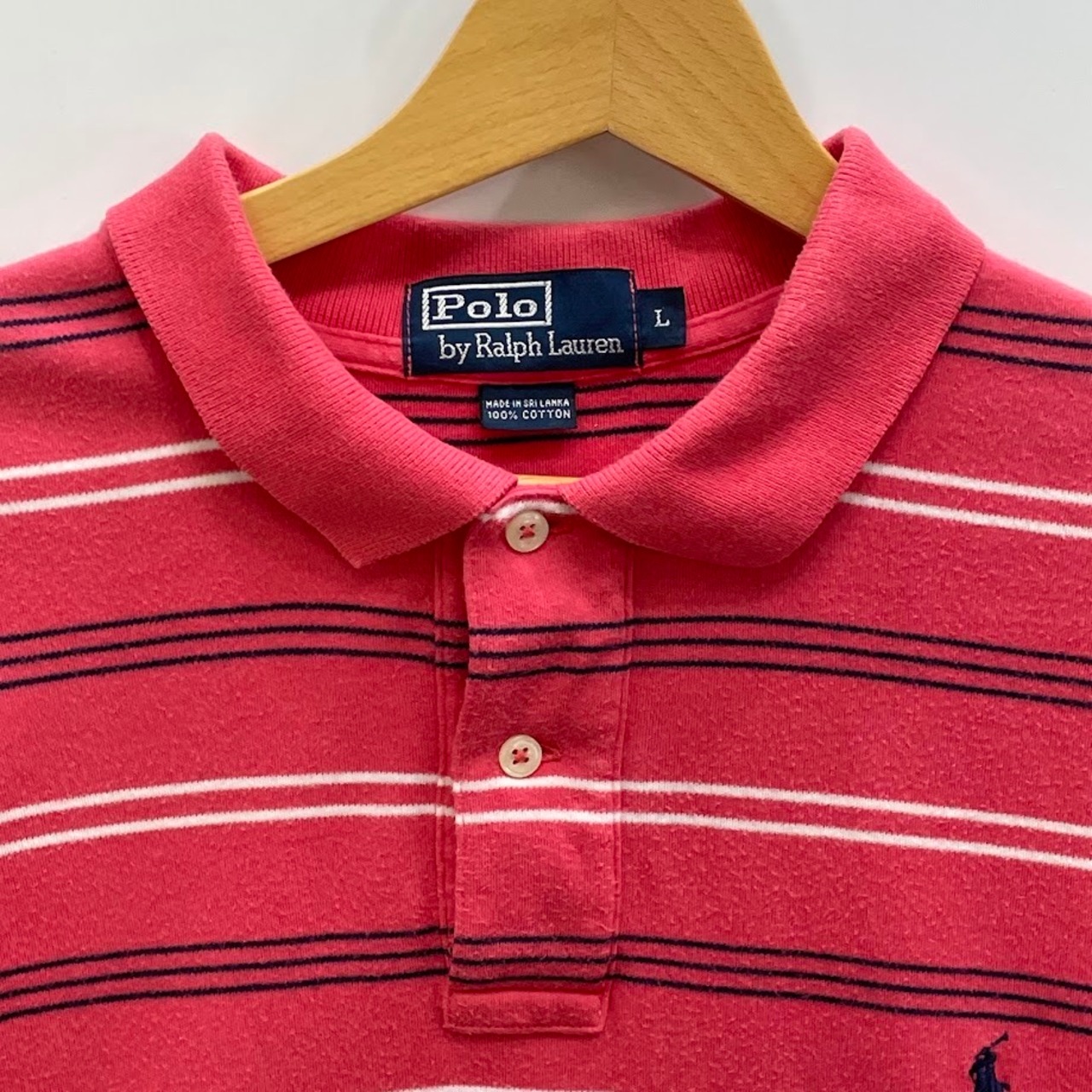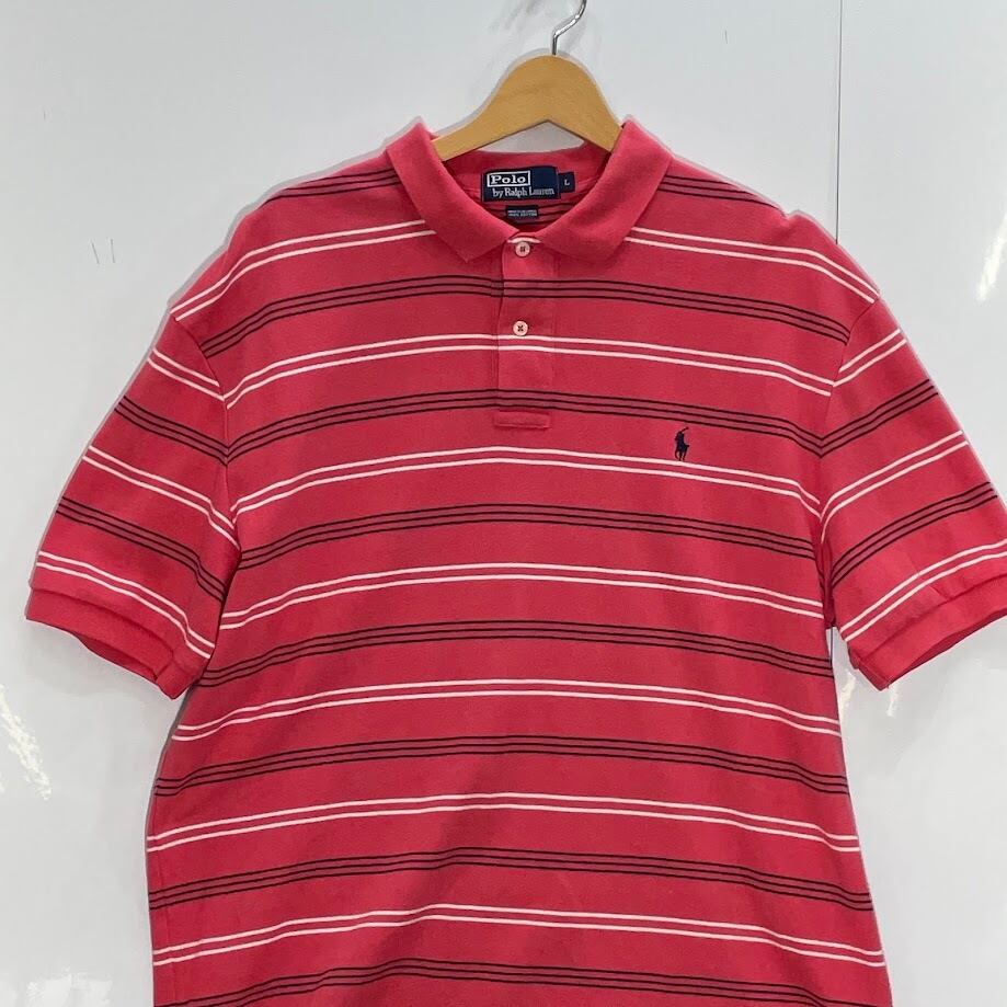 90's Polo by Ralph Lauren/90年代 ポロバイラルフローレン ボーダー ポニー刺繡 半袖 ポロシャツ ワンポイント刺繡 オーバーサイズ ビッグシルエット スリランカ製 メンズ L レッド | OASISCLOTHING 海外古着屋【公式】通販サイト