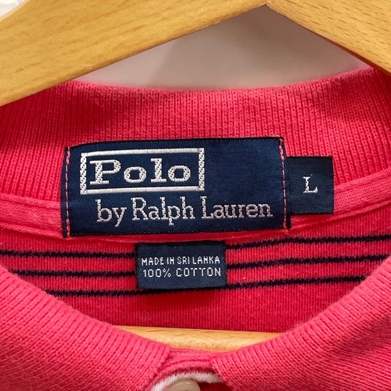 商品名:90's Polo by Ralph Lauren/90年代 ポロバイラルフローレン ボーダー ポニー刺繡 半袖 ポロシャツ ワンポイント刺繡 オーバーサイズ ビッグシルエット スリランカ製 メンズ L レッド