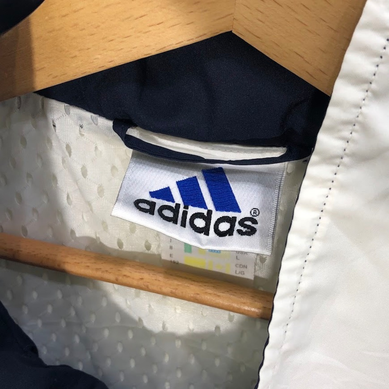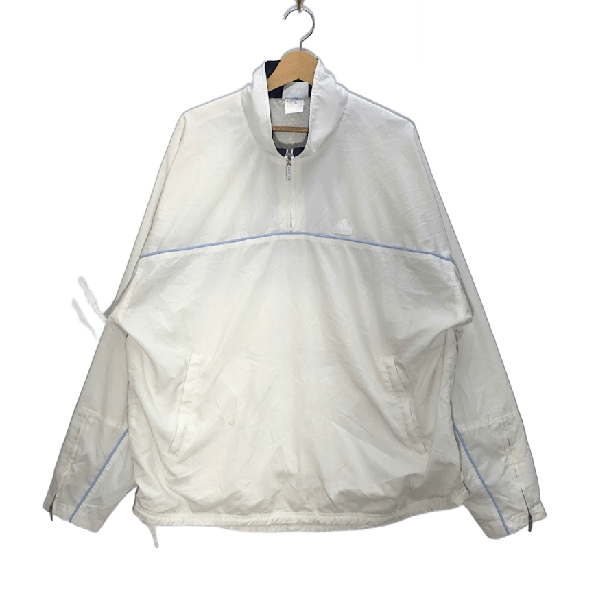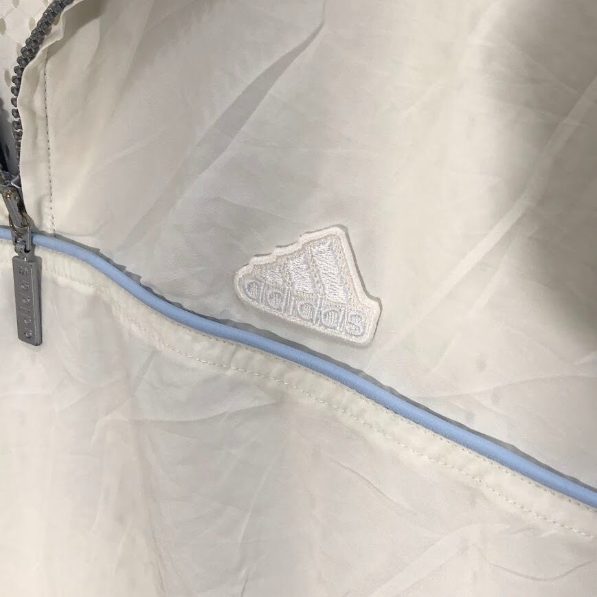 90’s vintage 90年代 ヴィンテージ adidas アディダス 万国旗タグ ナイロンプルオーバー ハーフジップ ジャケット メッシュライナー 裾ジップ ライトアウター バック刺繍 ワンポイント刺繡 ビックシルエット カンボジア製 Lサイズ ホワイト | OASISCLOTHING 海外古着屋【公式】通販サイト