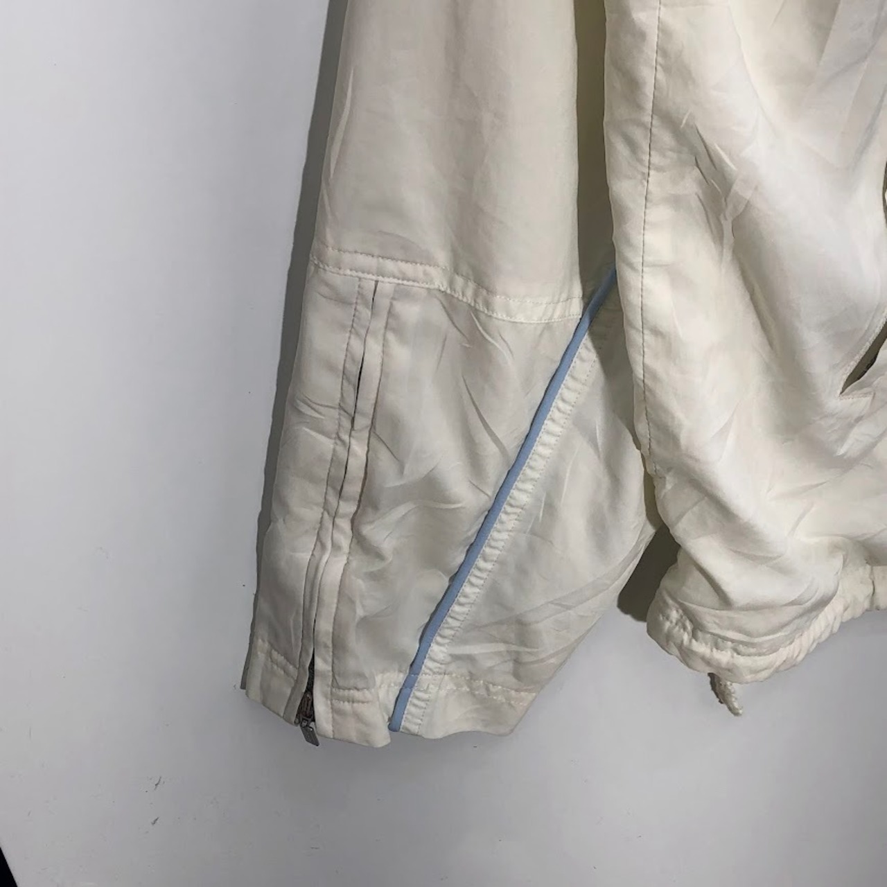 商品名: 90’s vintage 90年代 ヴィンテージ adidas アディダス 万国旗タグ ナイロンプルオーバー ハーフジップ ジャケット メッシュライナー 裾ジップ ライトアウター バック刺繍 ワンポイント刺繡 ビックシルエット カンボジア製 Lサイズ ホワイト