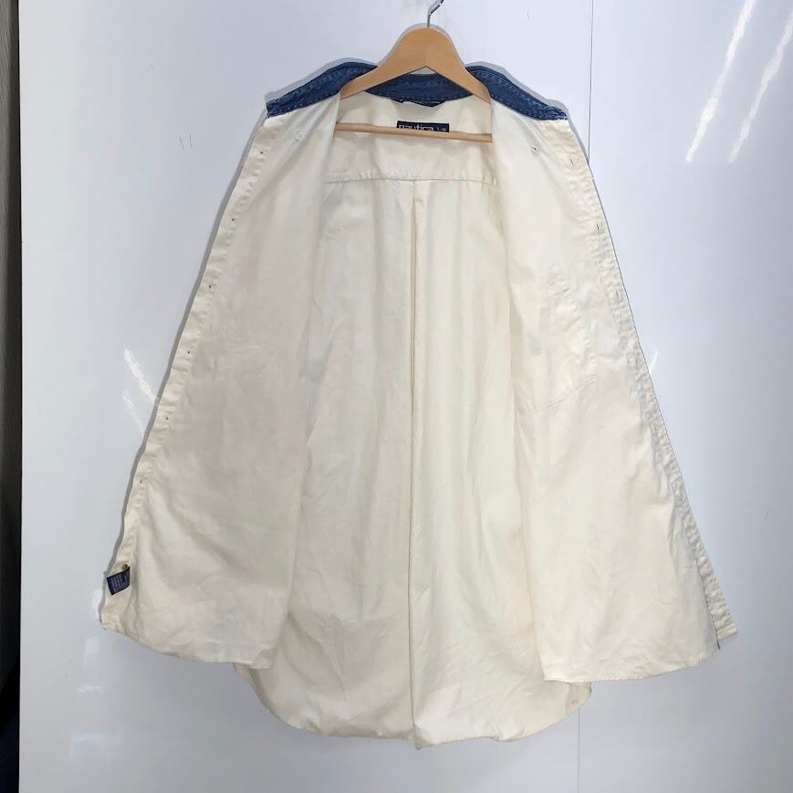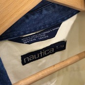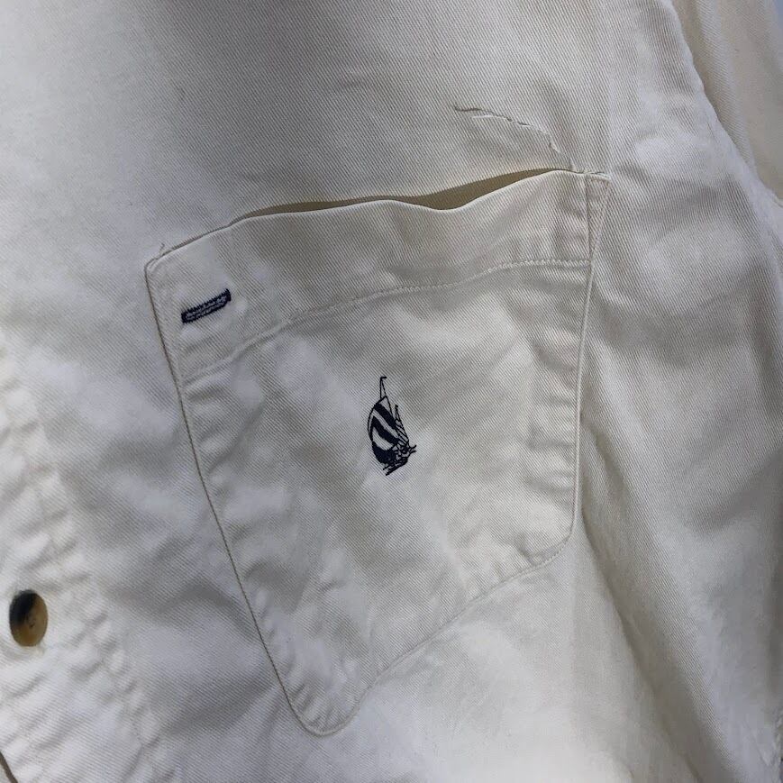 90's vintage 90年代 ヴィンテージ NAUTICA ノーティカ 旧ロゴ オールド 襟デニム 長袖 シャツ ボタンダウン ワンポイント刺繡 オーバーサイズ ビックシルエットジャマイカ製 L/Gサイズ アイボリー