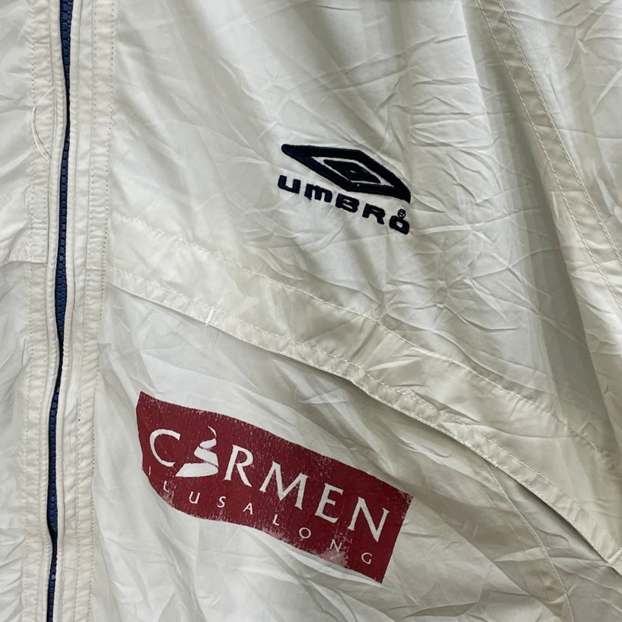90’s UMBRO/90年代 アンブロ ナイロンジャケット ライトアウター フロントバックプリント 企業ロゴプリント ワンポイント刺繡 オーバーサイズ ビッグシルエット CHINA製 メンズ XXL ホワイトグレー/ネイビー | OASISCLOTHING 海外古着屋【公式】通販サイト