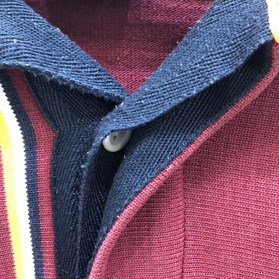 商品名:ACADEMY UNIFORMS CATHOLIC REGIONAL COLLEGE 長袖 ラガーシャツ AUSTRALIA製 メンズ エンジカラー