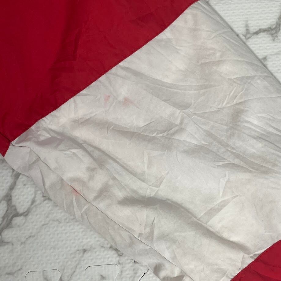 商品名: STEEPLE CHASE ナイロンジャケット ブルゾン ボーダー ワンポイント刺繡 オーバーサイズ ビッグシルエット ホンコン製 Lサイズ レッド ホワイト