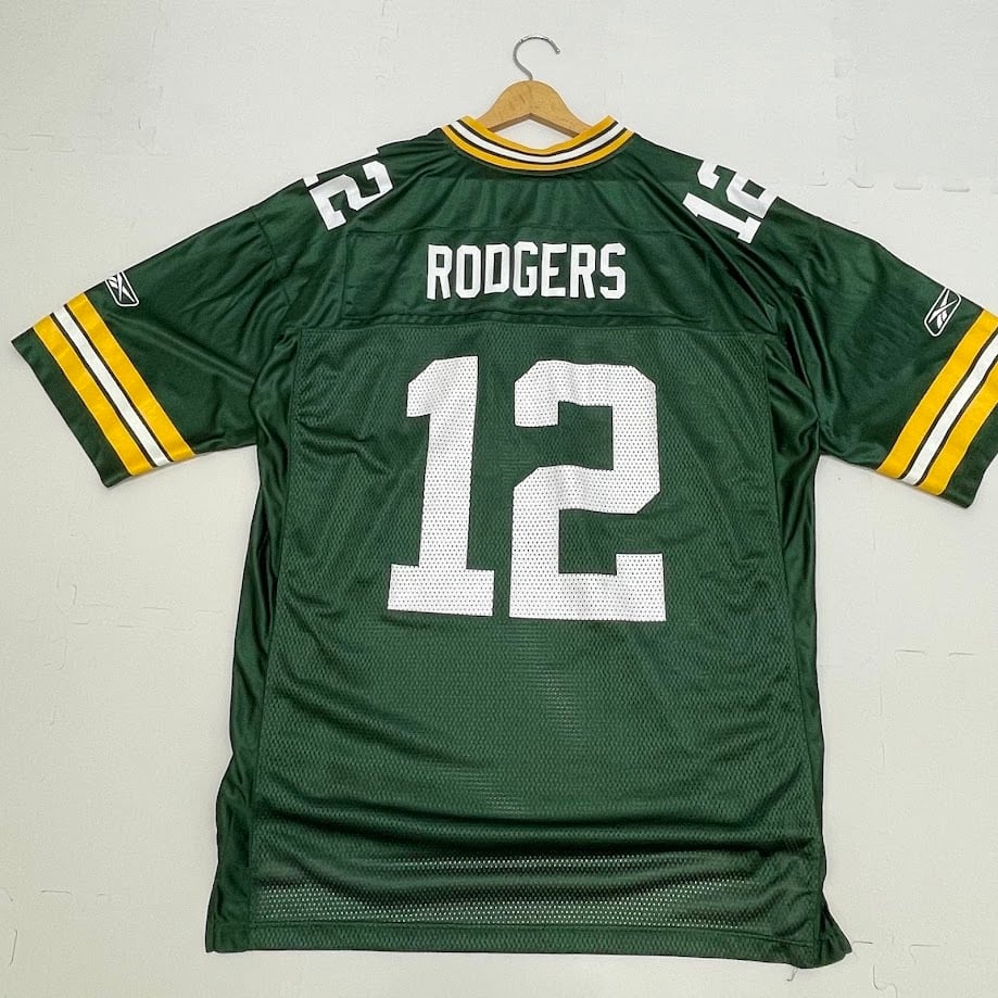 Reebok NFL リーボック エヌエフエル ゲームシャツ チーム ユニフォーム RODOGELS 12 グリーンベイ パッカーズ アーロン 半袖 Tシャツ フロントバックプリント オーバーサイズ ビッグシルエット ホンジュラス製 XLサイズ グリーン
