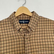 Ralph Lauren ラルフローレン チェックシャツ 長袖 シャツ ボタンダウン CHINA製 Mサイズ ブラウン