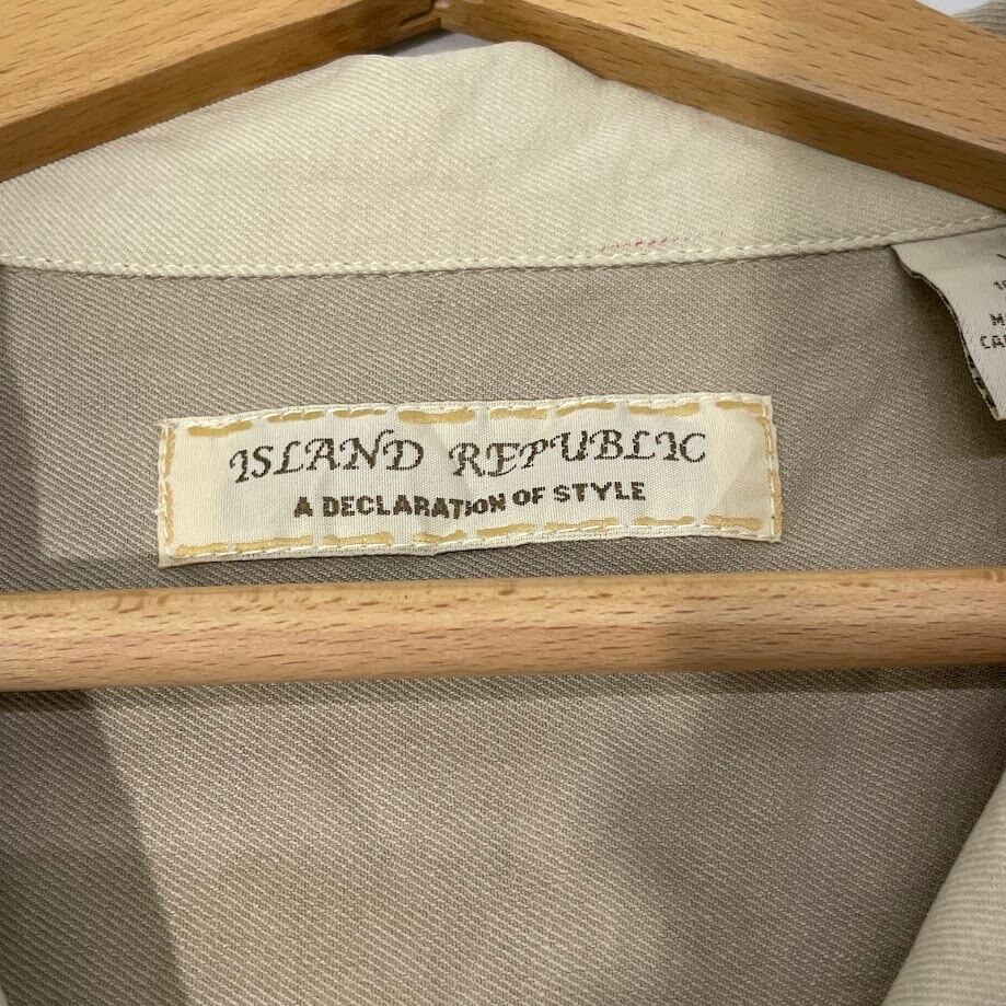 ISLAND REPUBLIC キューバシャツ 開襟 シルク 半袖 シャツ ボタンダウン フロント刺繍 オーバーサイズ ビッグシルエット CHINA製 XLサイズ ベージュ アイボリー