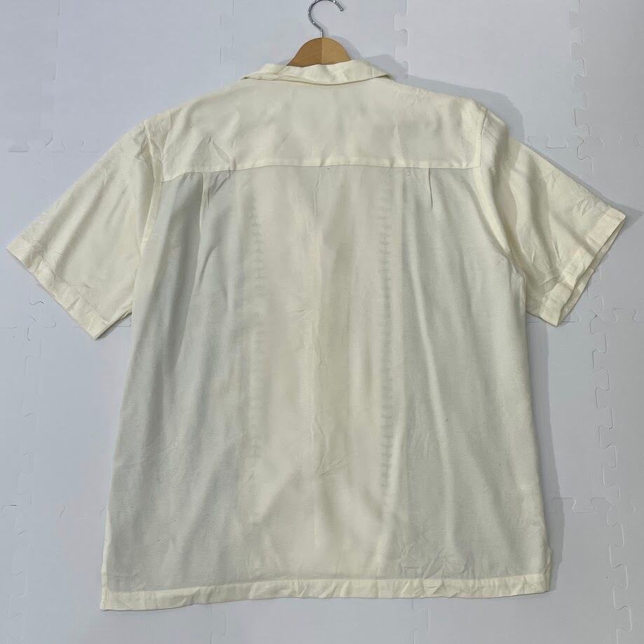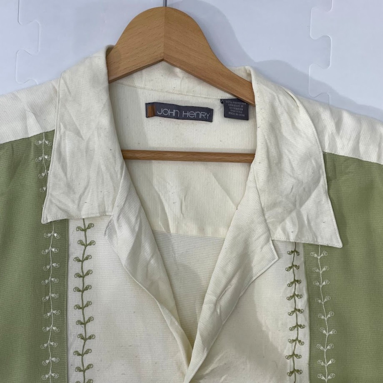 JOHN HENRY キューバシャツ メキシカンシャツ レーヨンシャツ 開襟シャツ バイカラーシャツ 半袖 シャツ ボタンダウン フロント刺繡 オーバーサイズ ビッグシルエット CHINA製 メンズ XL ホワイト/ライトグリーン