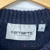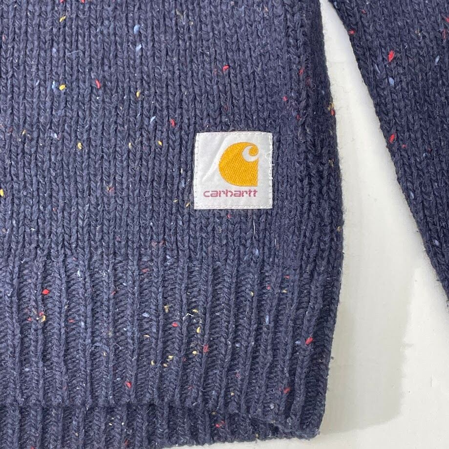 商品名:carhartt/カーハート ニット アングリスティックセーター WIP 長袖 ワンポイント刺繡 カンボジア製 メンズ S ネイビー