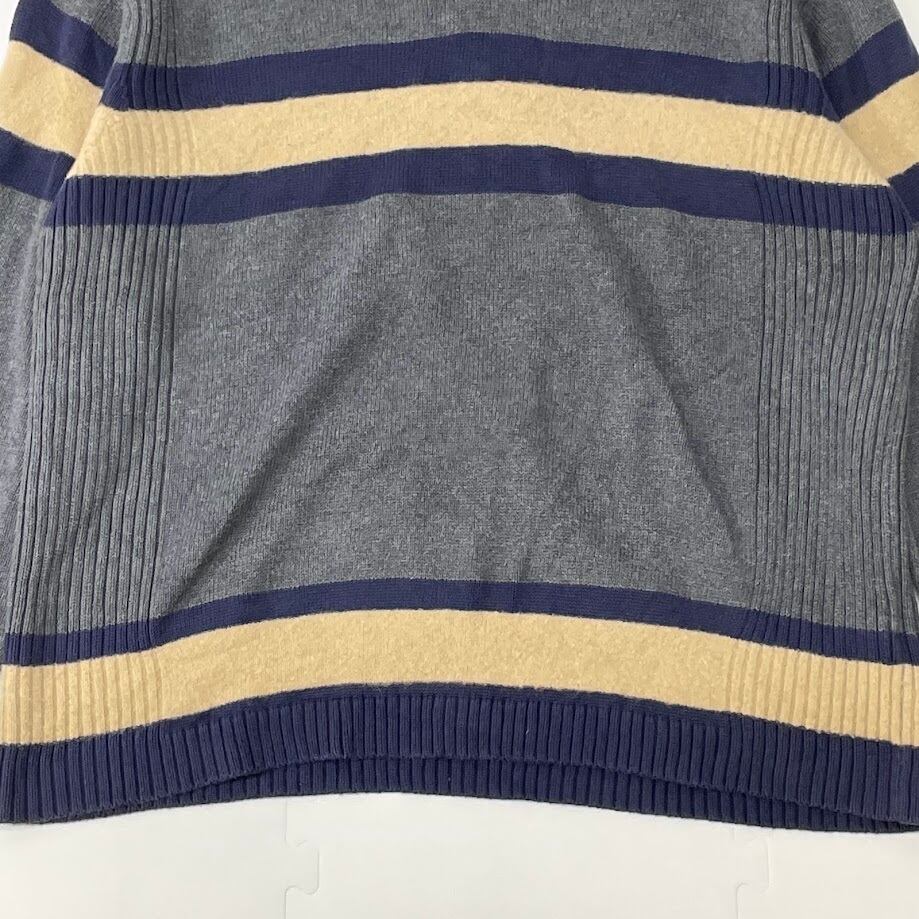 商品名:00's TOMMY HILFIGER\00年代 トミーヒルフィガー Vネック セーター ニット ボーダー ワンポイント刺繡 オーバーサイズ ビックシルエット HONGKONG製 メンズ XL グレー/その他