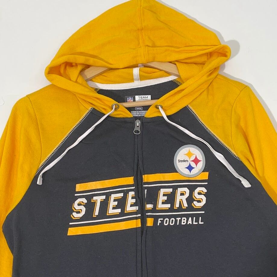NFL エヌエフエル STEELERS スティーラー フットボール アメフト パーカー フーディー フロントプリント ワンポイント刺繍 パキスタン製 WOMEN’S Mサイズ イエロー ブラック | OASISCLOTHING 海外古着屋【公式】通販サイト