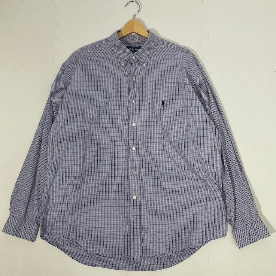 90's Ralph Lauren 90年代 ラルフローレン 長袖シャツ ワンポイントポニー刺繍 オーバーサイズ ビッグシルエット チェック柄 ボタンダウン SRILANKA製 XLサイズ ブルー | OASISCLOTHING 海外古着屋【公式】通販サイト