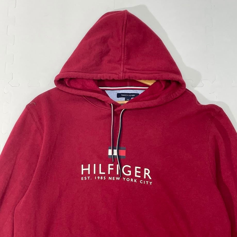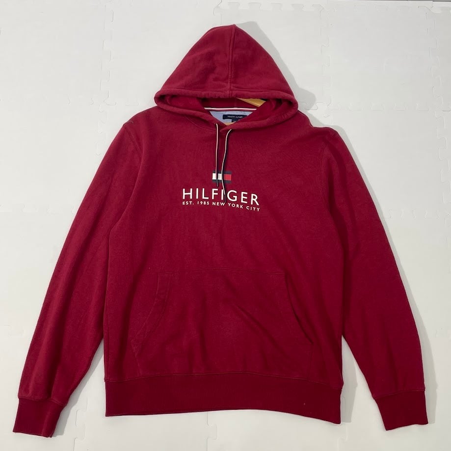 商品名: TOMMY HILFIGER/トミーヒルフィガー プルオーバー バーガンディ パーカー フーディー フロントプリント オーバーサイズ ビックシルエット GUATEMALA製 メンズ L バーガンディ