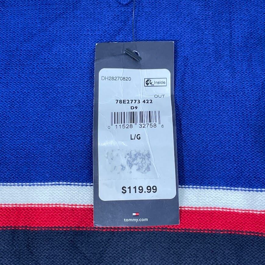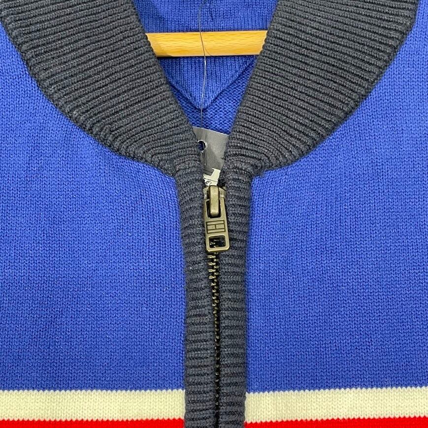 TOMMY HILFIGER トミーヒルフィガー ジップアップニット タグ付 セーター ジャケット ライトアウター フロント刺繍 オーバーサイズ ビックシルエット CHINA製 L/Gサイズ ブルー ホワイト