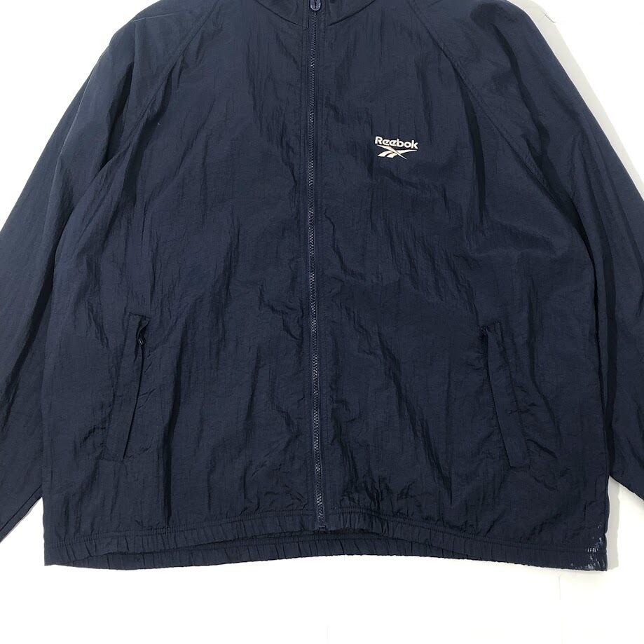 90’s Reebok/90年代 リーボック ナイロンジャケット フード収納 ライトアウター バック刺繍 ワンポイント刺繡 オーバーサイズ ビッグシルエット タイ製 メンズ XL ネイビー | OASISCLOTHING 海外古着屋【公式】通販サイト
