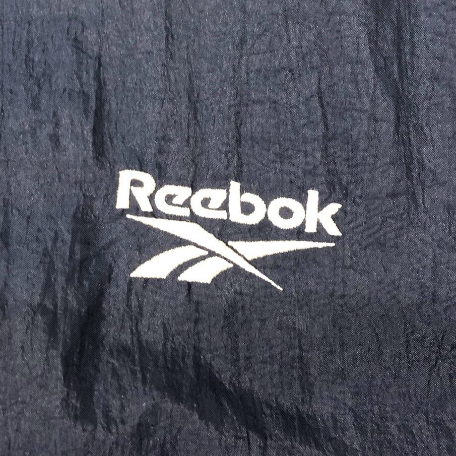 商品名:90’s Reebok/90年代 リーボック ナイロンジャケット フード収納 ライトアウター バック刺繍 ワンポイント刺繡 オーバーサイズ ビッグシルエット タイ製 メンズ XL ネイビー