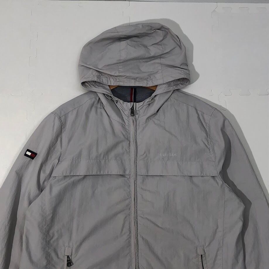TOMMY HILFIGER/トミーヒルフィガー ナイロンジャケット フード ライトアウター ワンポイント刺繡 オーバーサイズ ビッグシルエット インドネシア製 メンズ L ホワイトグレー | OASISCLOTHING 海外古着屋【公式】通販サイト
