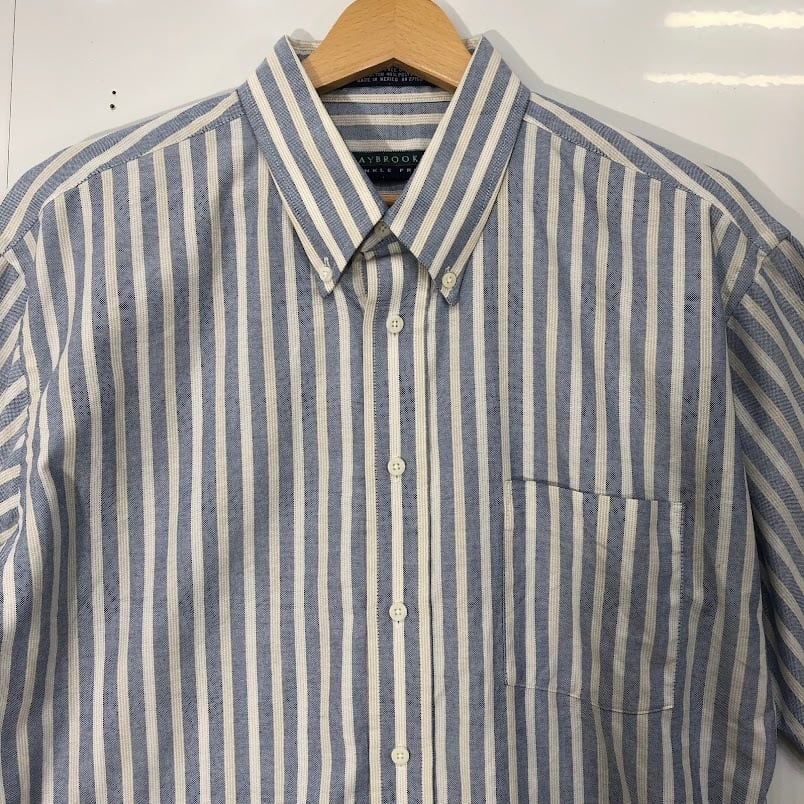 CLAYYBROOKE クレイブルック ストライプ 半袖 シャツ ボタンダウン オーバーサイズ ビッグシルエット メキシコ製 161/2 ブルー ホワイト | OASISCLOTHING 海外古着屋【公式】通販サイト