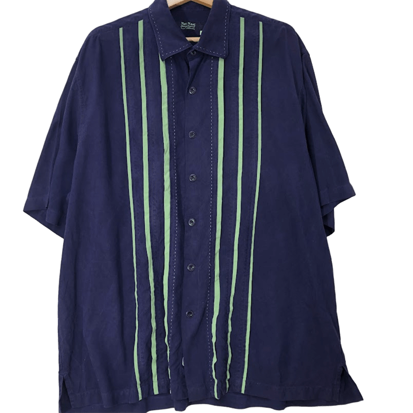 NatNast 90年代/90 's vintage シルクシャツ 半袖 シャツ ボタンダウン オーバーサイズ ビッグシルエット XLサイズ ネイビー グリーン | OASISCLOTHING 海外古着屋【公式】通販サイト