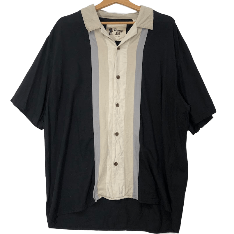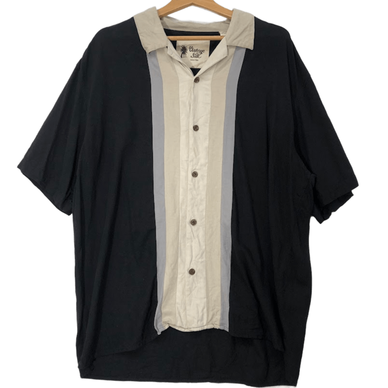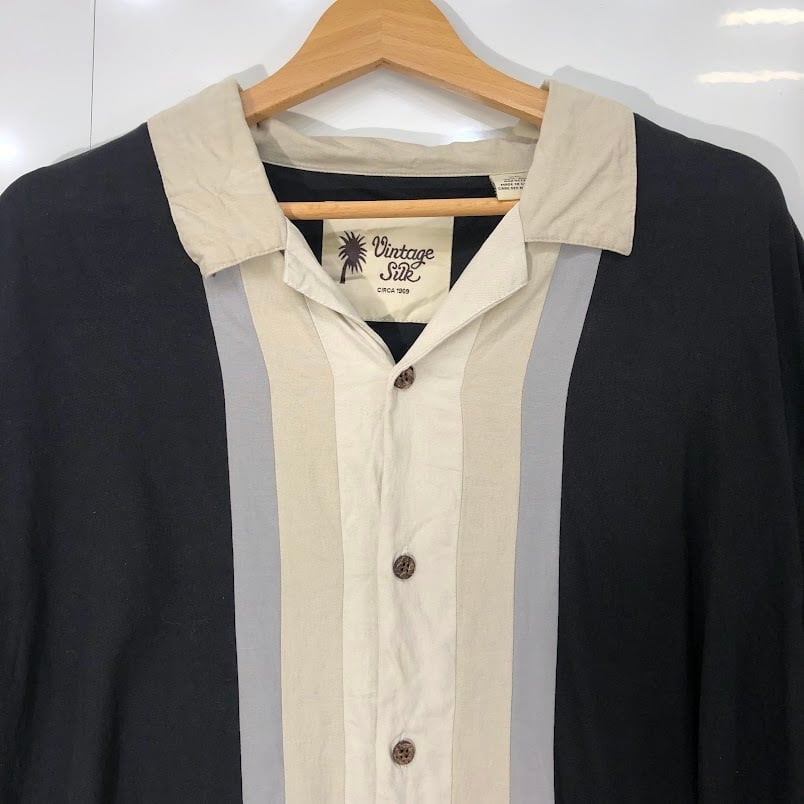 VintageSilk オープンカラーシャツ シルクシャツ キューバシャツ 半袖 シャツ ボタンダウン オーバーサイズ ビッグシルエット china製 XLサイズ ブラック | OASISCLOTHING 海外古着屋【公式】通販サイト