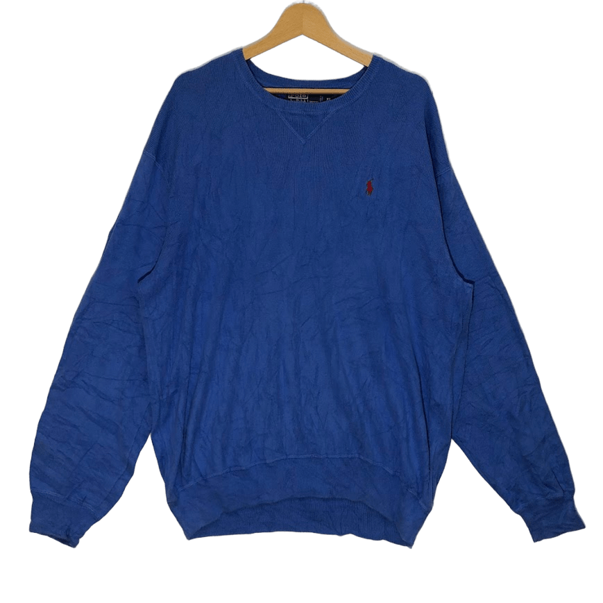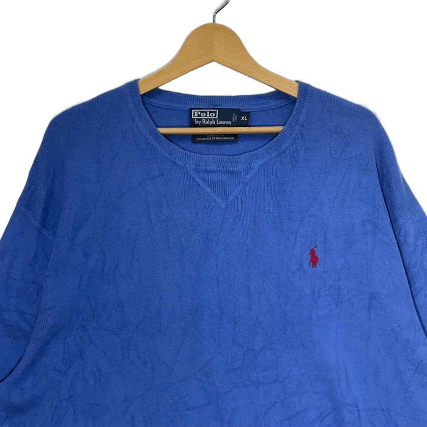 Polo by Ralph Lauren ポロバイラルフローレン ニット セーター ポニー刺繡 クルーネック 長袖 ワンポイント刺繡 オーバーサイズ ビッグシルエット China製 XLサイズ ブルー | OASISCLOTHING 海外古着屋【公式】通販サイト