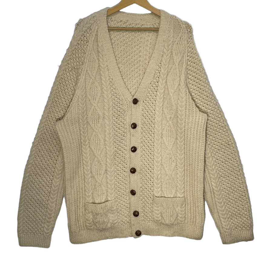 商品名:ウール100%ニット カーディガン ピュアニューウール UNITED KINGDOM製 アイボリー