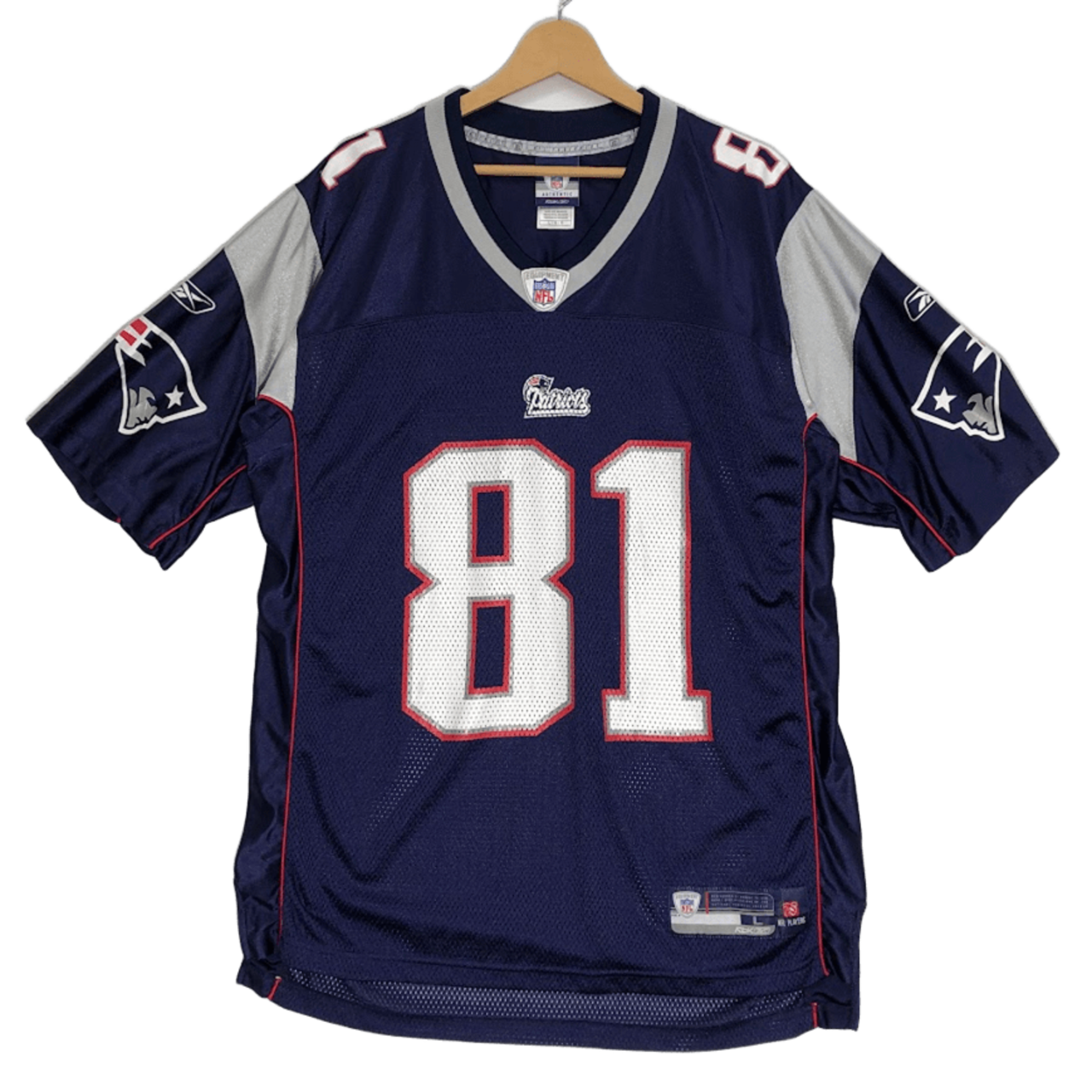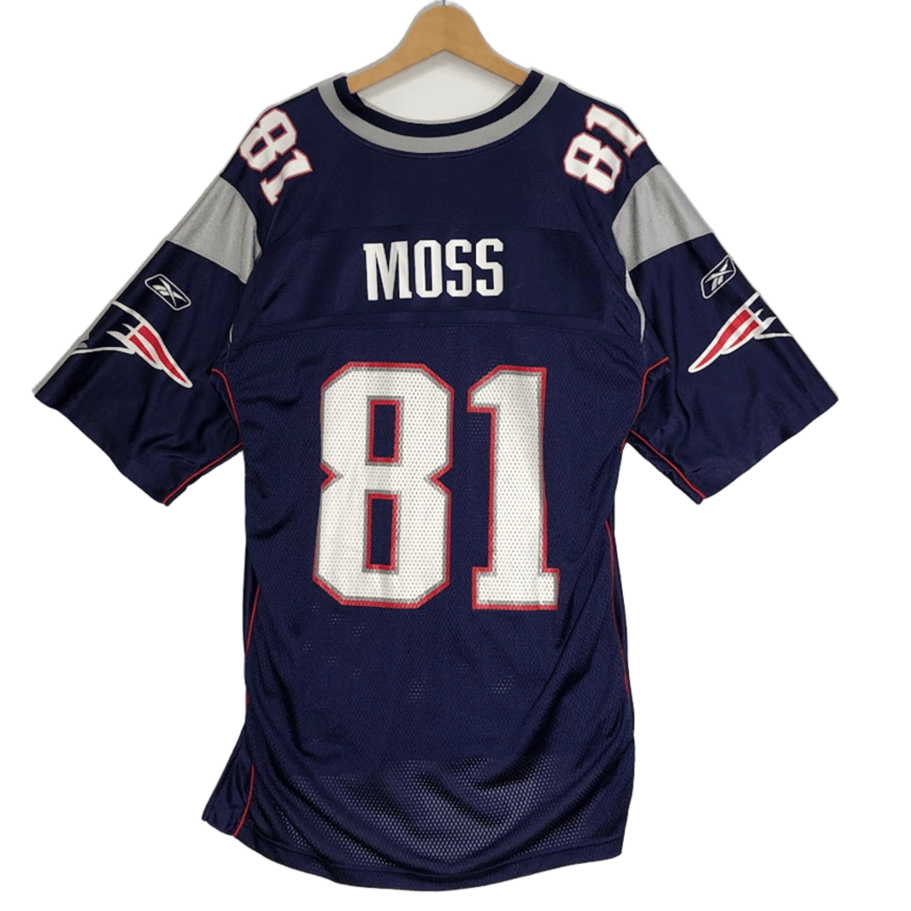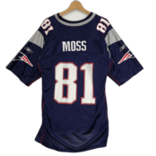 Reebok NFL リーボック エヌエフエル ゲームシャツ チーム ユニフォーム ペイトリオッツ MOSS 81 ラディ・モス 半袖 Tシャツ フロントバックプリント オーバーサイズ ビッグシルエット ELSALVADOR製 Lサイズ ネイビー | OASISCLOTHING 海外古着屋【公式】通販サイト