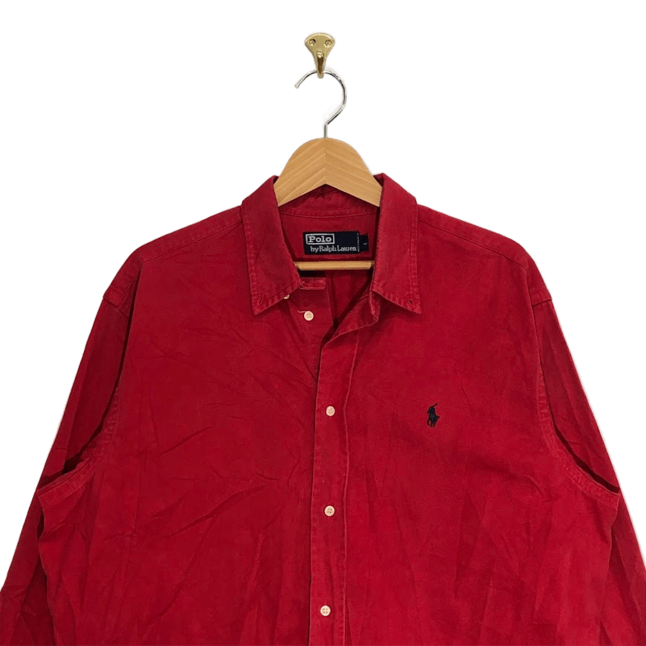 90's vintage 90年代 ヴィンテージ Polo by Ralph Lauren ポロバイラルフローレン ポニー刺繍 長袖 シャツ ボタンダウン ワンポイント刺繡 オーバーサイズ ビッグシルエット マレーシア製 Lサイズ レッド | OASISCLOTHING 海外古着屋【公式】通販サイト