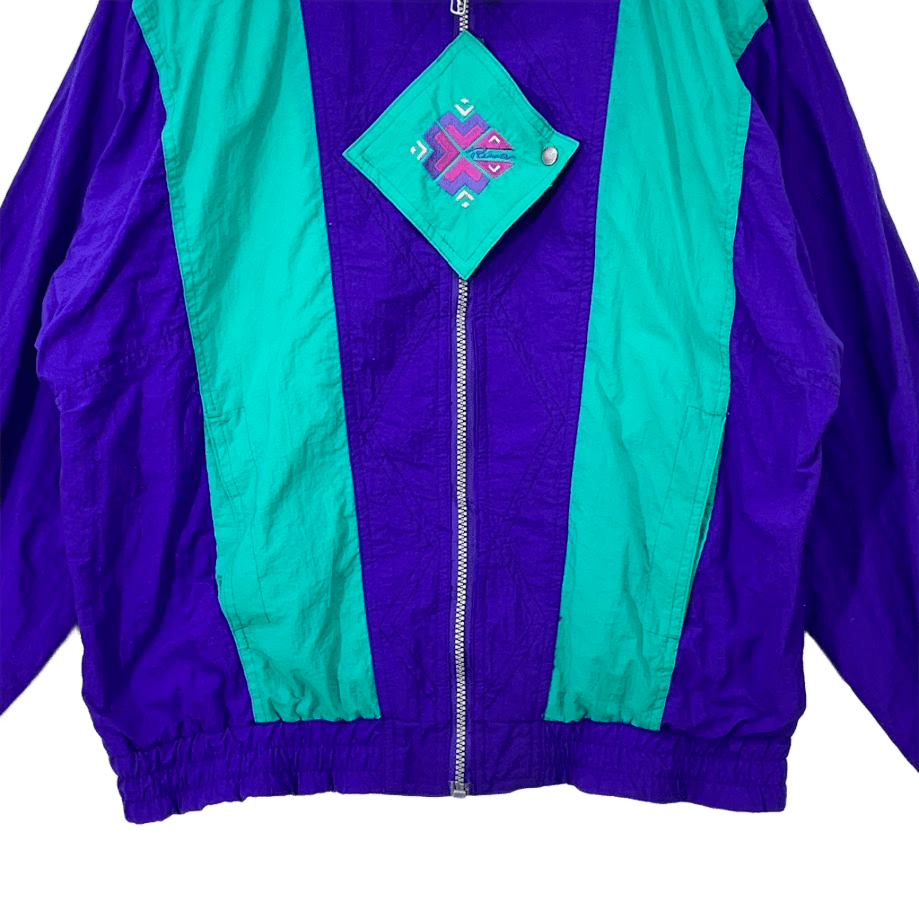 商品名:90's/90年代 PUMA/プーマ macht's mit Qualitat ナイロンジャケット ブルゾン ライトアウター フロント刺繍 CHINA製 メンズ M グリーン/パープル