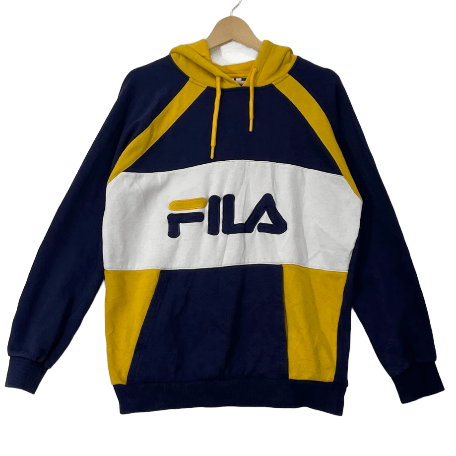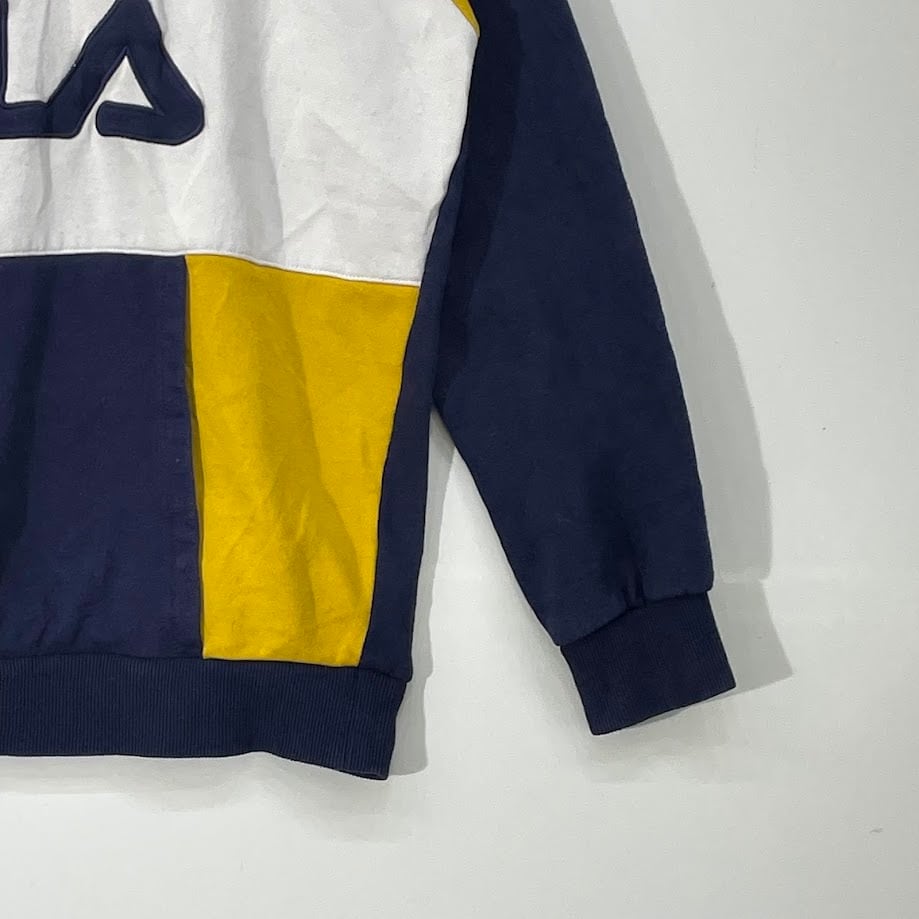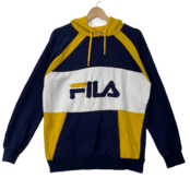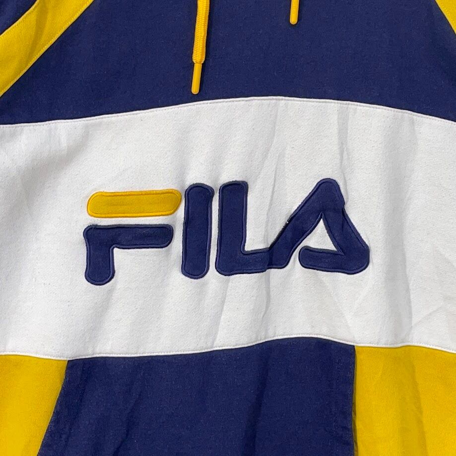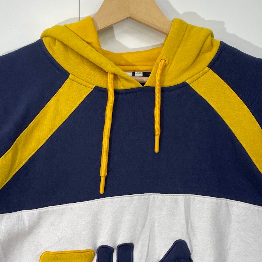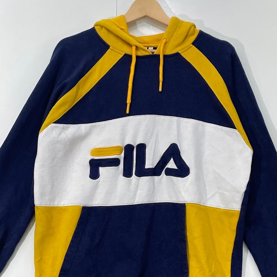 90's/90年代 FILA/フィラ オールドフィラ パーカー フーディー プルオーバー フロント刺繡 オーバーサイズ ビックシルエット CHINA製 メンズ M/12 ネイビー/イエロー/ホワイト | OASISCLOTHING 海外古着屋【公式】通販サイト