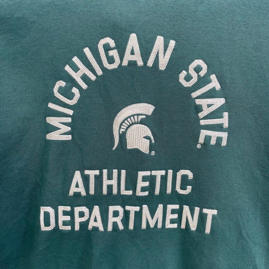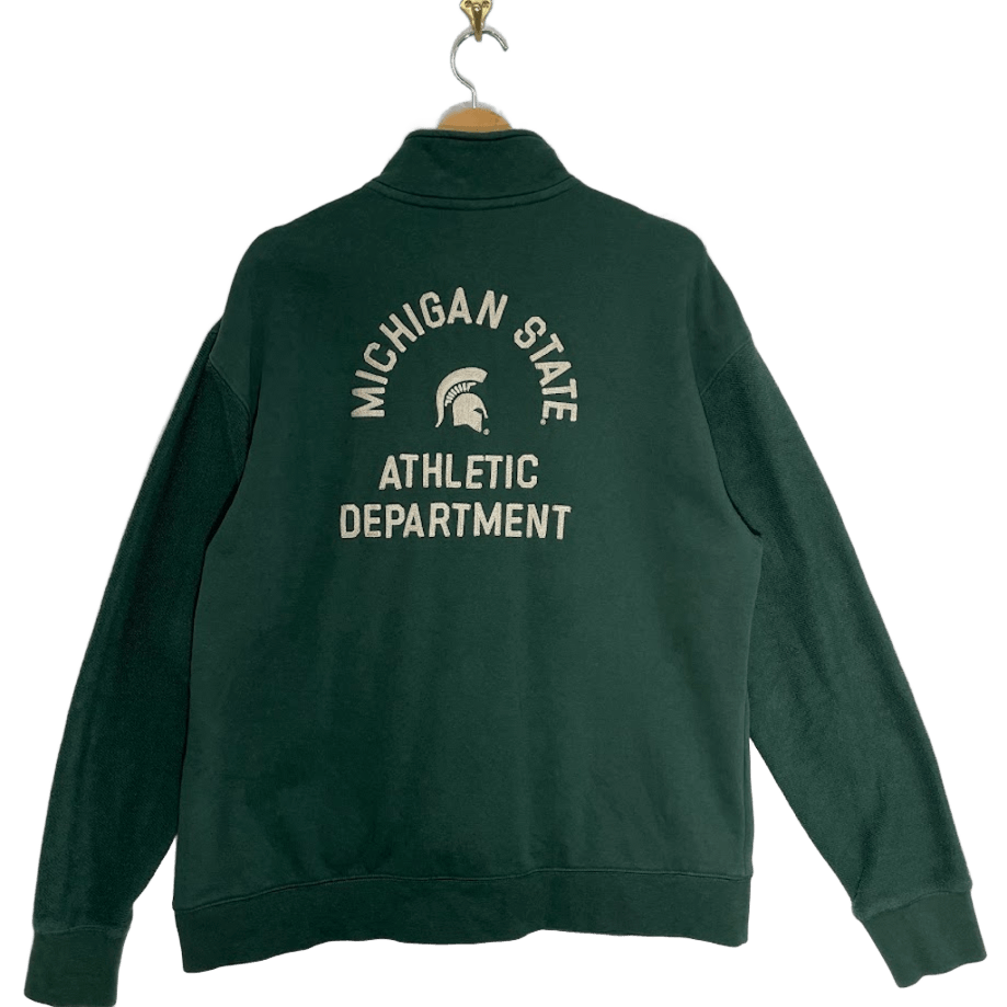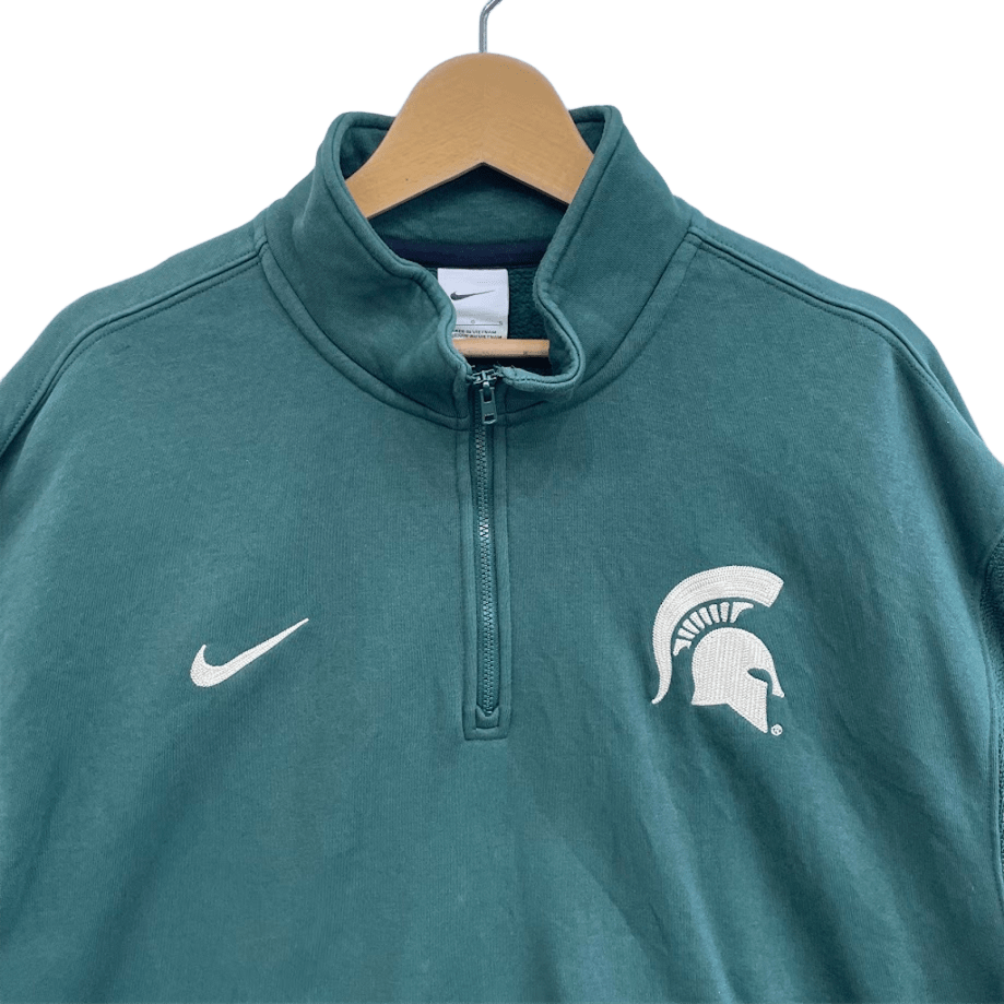 商品名:NIKE ナイキ ミシガンステート・スパルタンズ ハーフジップ プルオーバー カレッジ刺繍 スウェット トレーナー フロント刺繍 バッグ刺繡 オーバーサイズ ビッグシルエット ベトナム製 Lサイズ グリーン