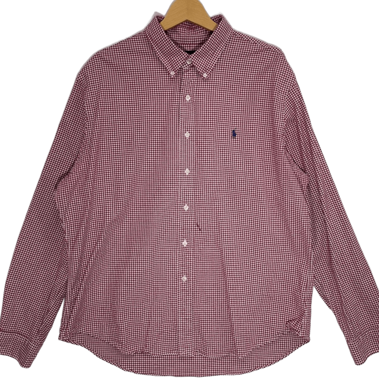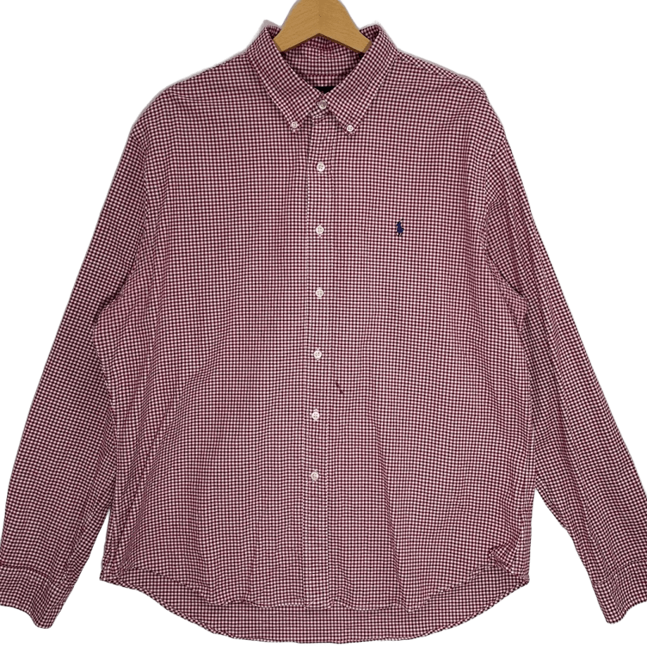 Ralph Lauren/ラルフローレン SLIMFIT ポニー刺繡 ギンガムチェック チェックシャツ 長袖 ボタンダウン ワンポイント刺繡 オーバーサイズ ビッグシルエット フィリピン製 XXLサイズ レッド | OASISCLOTHING 海外古着屋【公式】通販サイト