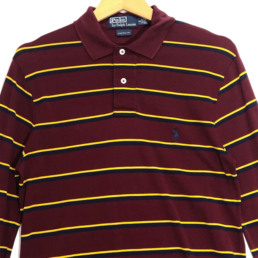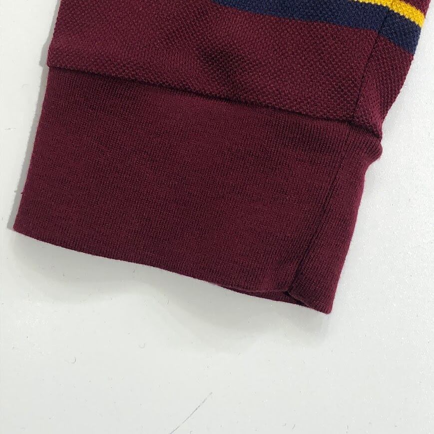 商品名:Polo by Ralph Lauren ポロバイラルフローレン 90年代 90’s ヴィンテージ CUSTOMFIT ボーダー ポニー刺繡 長袖 ポロシャツ ワンポイント刺繡 オーバーサイズ ビッグシルエット PERU製 Sサイズ レッド バーガンディ