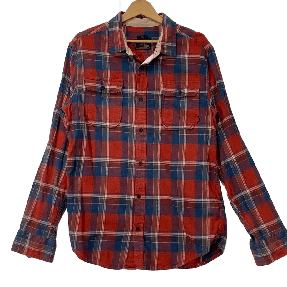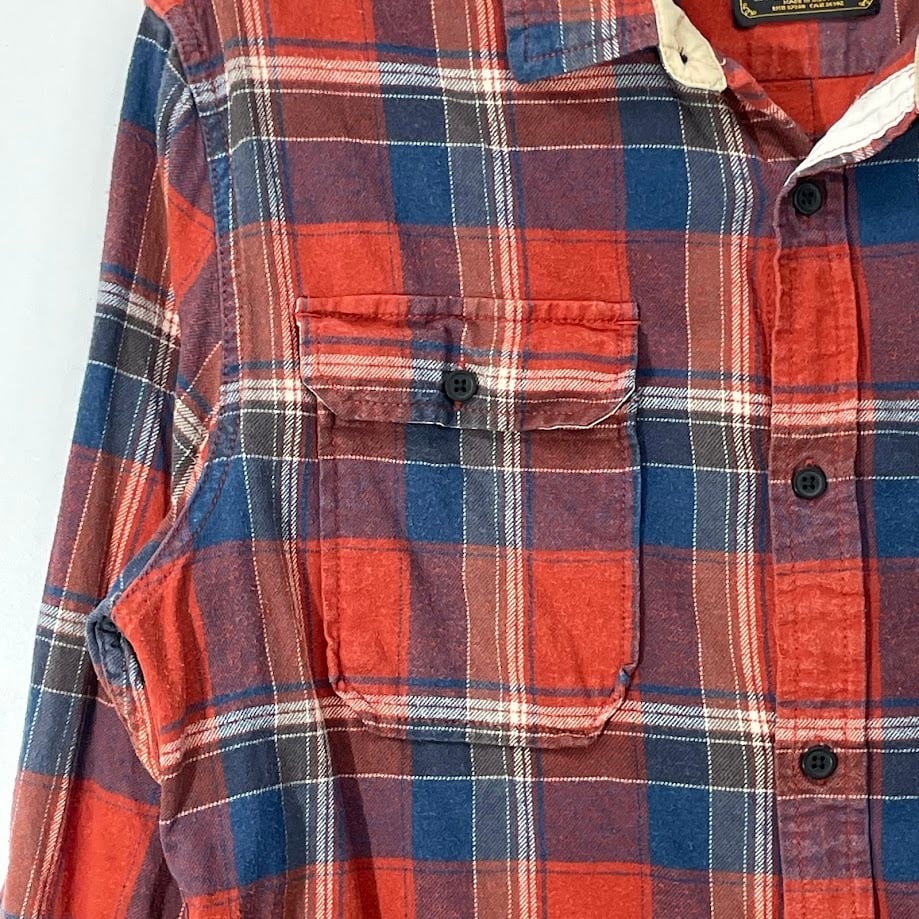 商品名:BURTON バートン ネルシャツ チェック柄 ダブルポケット 長袖 ボタンダウンオーバーサイズ インド製 オレンジ ブルー