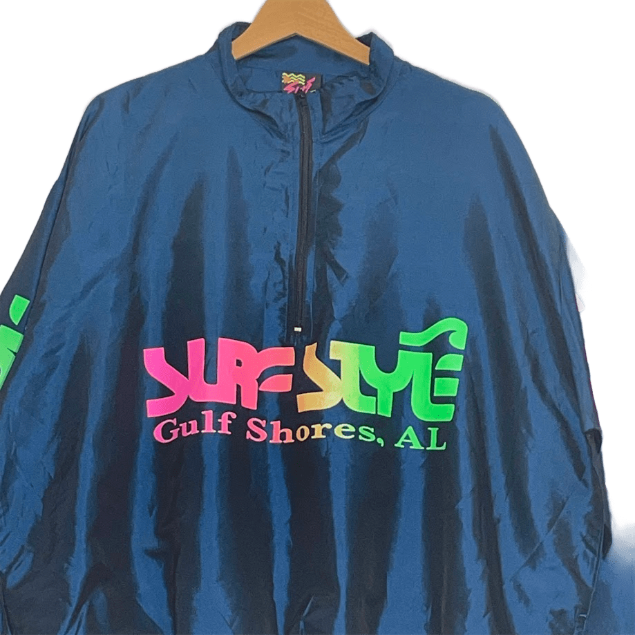90's/90年代 SurfStyle サーフスタイル ウインドブレーカー ハーフジップ ネオンカラー ライトアウター 長袖 フロントプリント オーバーサイズ ビッグシルエット パキスタン製 メンズ ネイビー/その他 | OASISCLOTHING 海外古着屋【公式】通販サイト