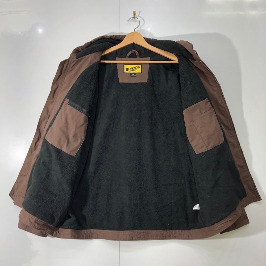 BRAZOS WORK FORCE アクティブジャケット ダックジャケット ダック地 ボアライナー フード アウター オーバーサイズ ビッグシルエット バングラデシュ製 2XLサイズ ブラウン | OASISCLOTHING 海外古着屋【公式】通販サイト
