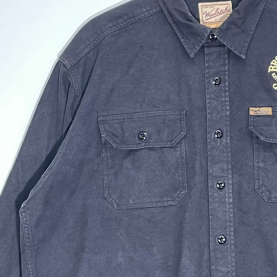 90's vintage 90年代 ヴィンテージ Woolrich ウールリッチ シャモアシャツ 長袖 シャツ ボタンダウン 企業ロゴ刺繍 オーバーサイズ ビッグシルエット メキシコ製 XLサイズ ブラック | OASISCLOTHING 海外古着屋【公式】通販サイト