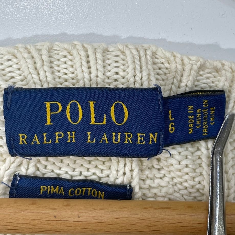 POLORALPH LAUREN/ポロラルフローレン ニット セーター ピマコットン ケーブルニット 長袖 ワンポイント刺繡 CHINA製 メンズ アイボリー | OASISCLOTHING 海外古着屋【公式】通販サイト