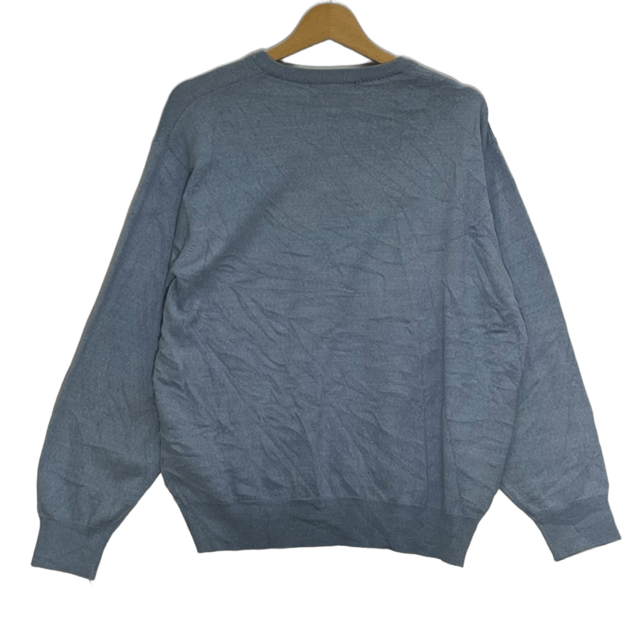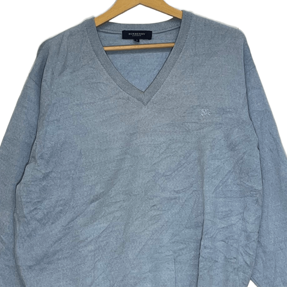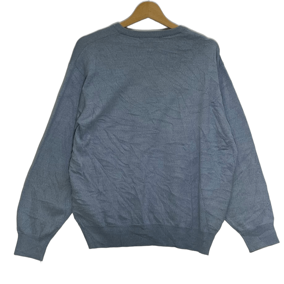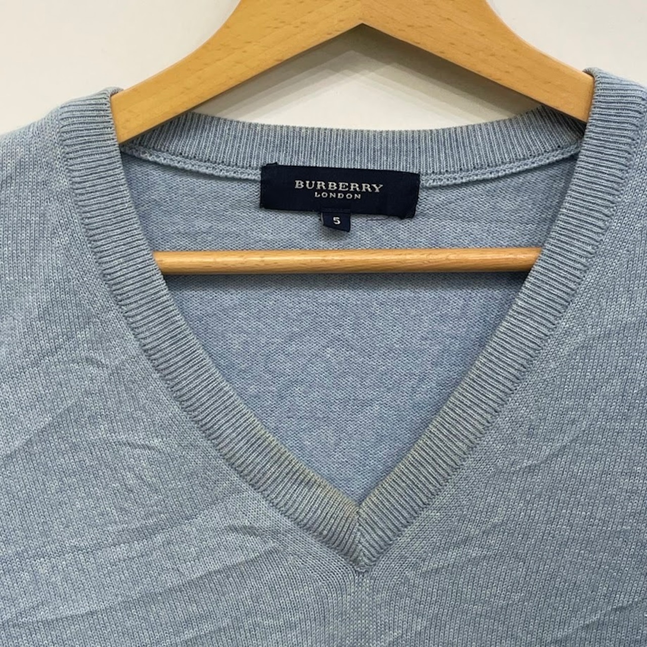 商品名:BURBERRY LONDON/バーバリーロンドン ニット セーター ワンポイント刺繡 スペイン製 メンズ 5サイズ ブルー