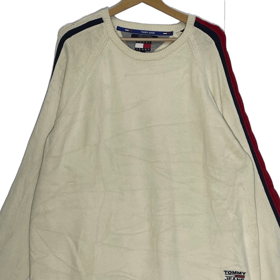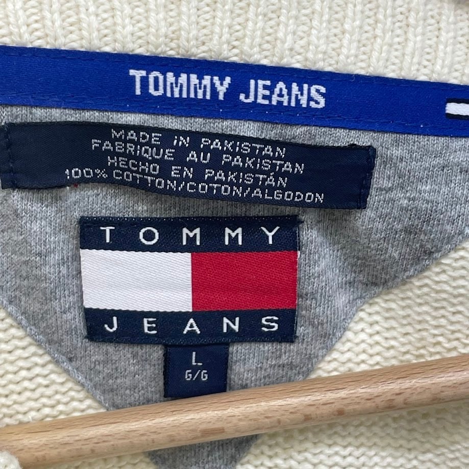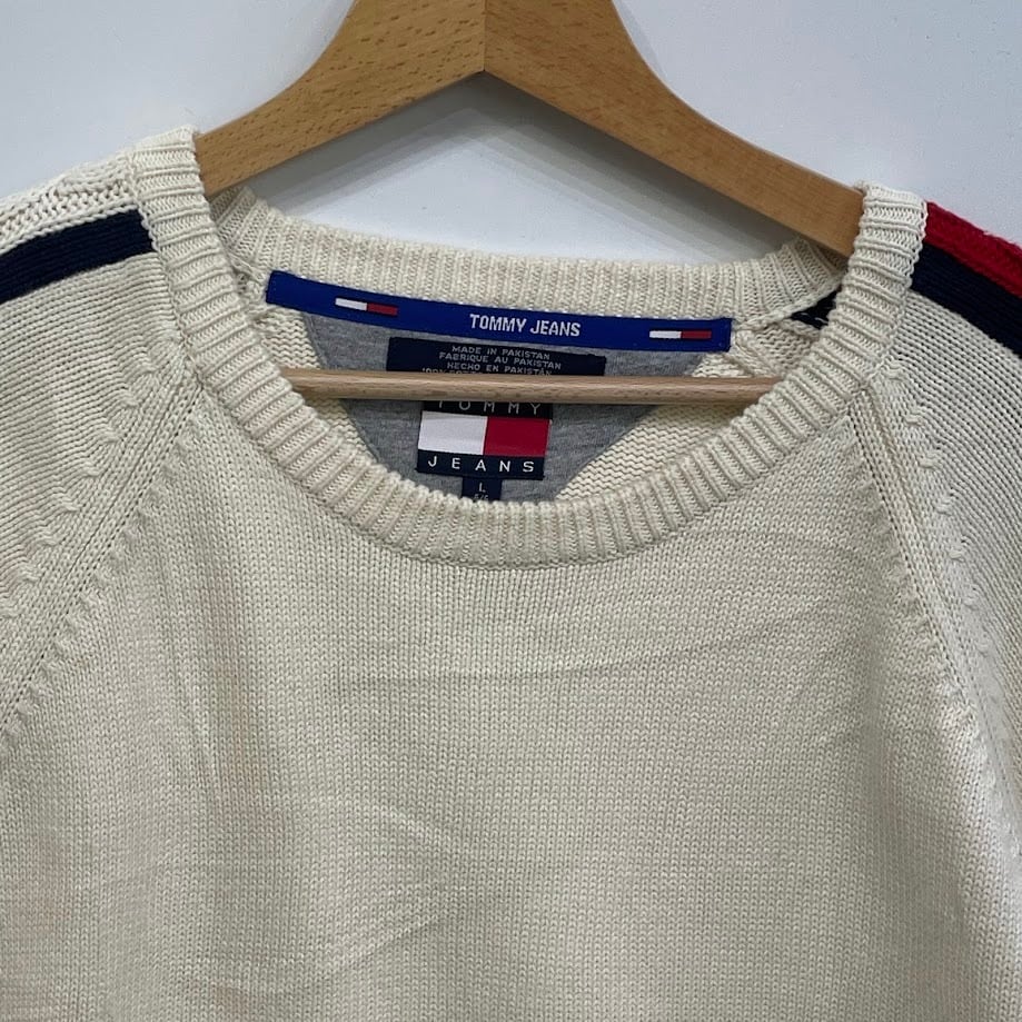 90's/90年代 TOMMY JEANS/トミージーンズ フラッグタグ ニット セーター ワンポイント刺繡 オーバーサイズ ビッグシルエット PAKISTAN製 メンズ L ホワイト/その他 | OASISCLOTHING 海外古着屋【公式】通販サイト