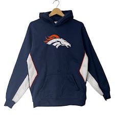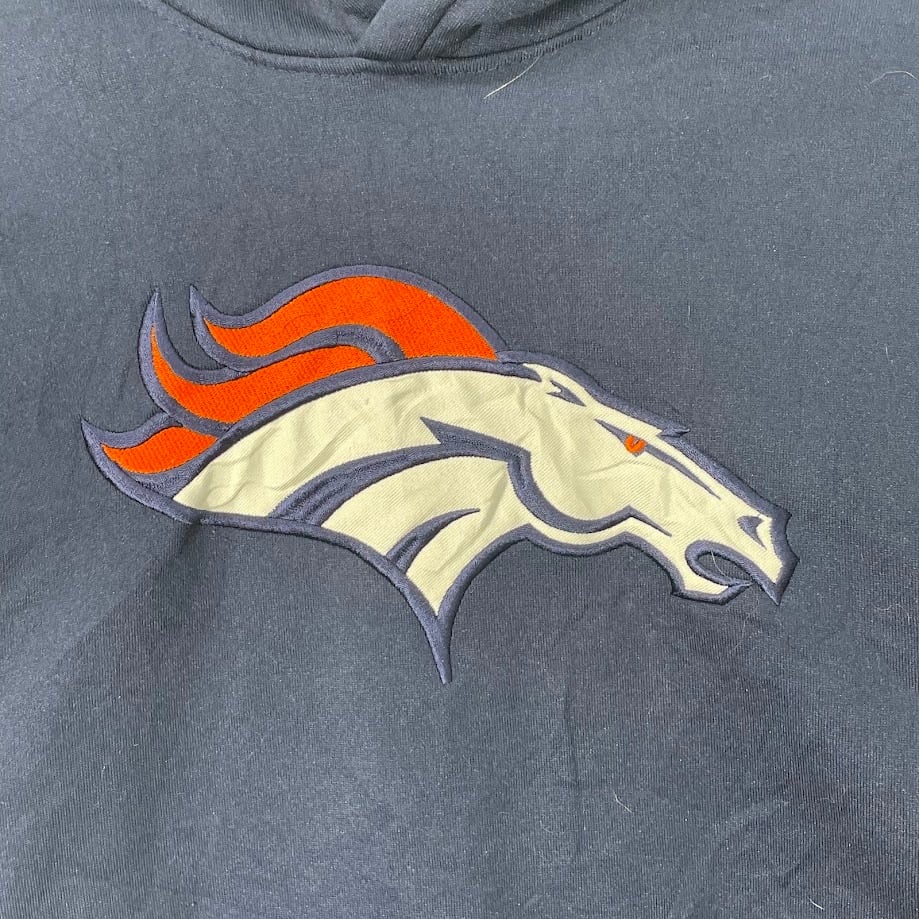商品名:NFL デンバー・ブロンコス パーカー フーディー プルオーバー フロント刺繍 エジプト製 YOUTH X LARGEサイズ ネイビー