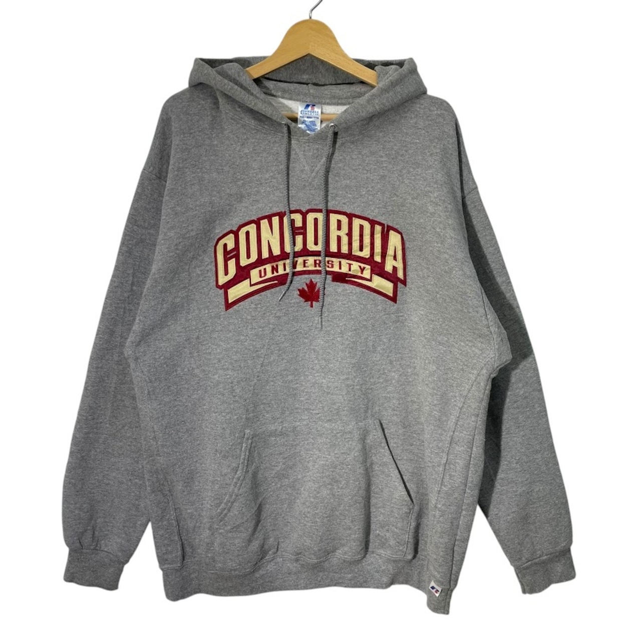 RUSSEL ATHLETIC ラッセルアスレチック カレッジ刺繍 コンコルディア大学シカゴ パーカー フーディー プルオーバー フロント刺繍 オーバーサイズ ビッグシルエット ホンジュラス製 XXLサイズ グレー | OASISCLOTHING 海外古着屋【公式】通販サイト