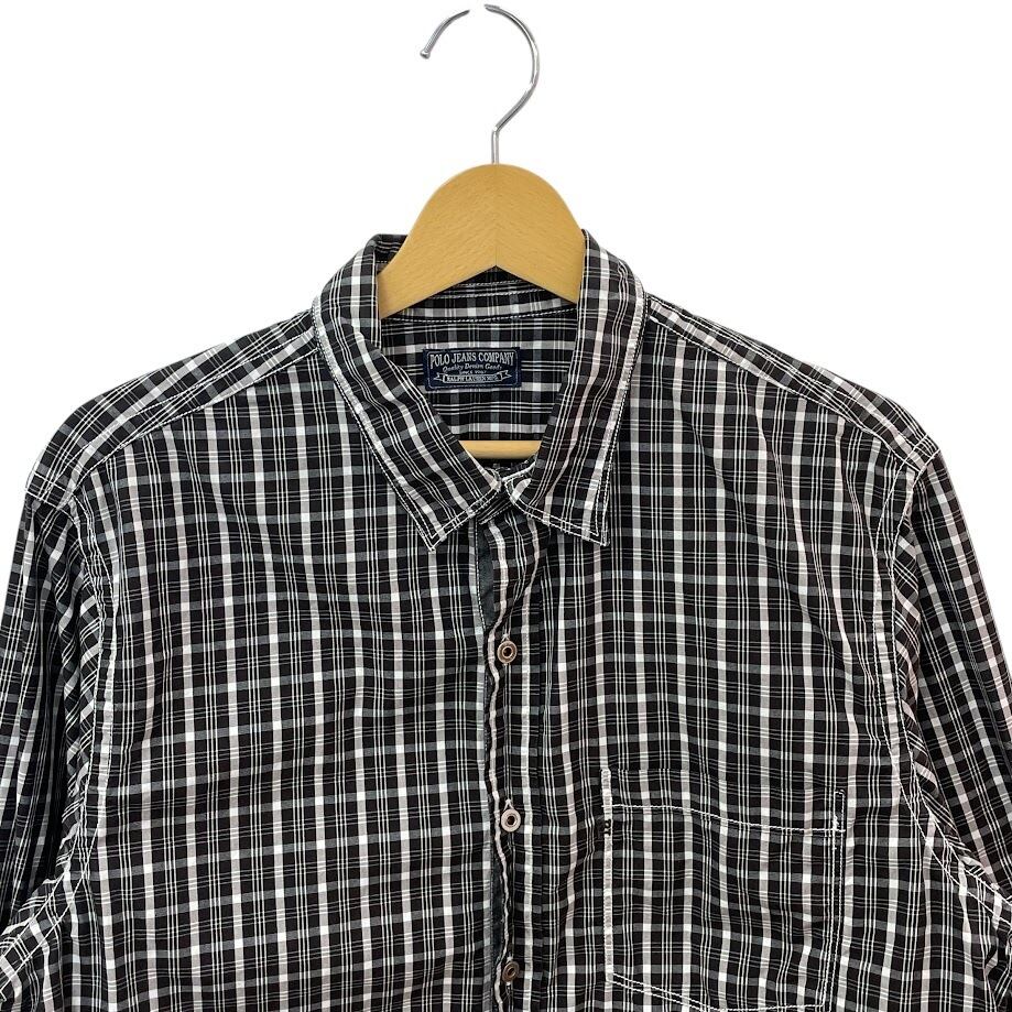 POLO JEANS COMPANY ポロジーンズカンパニー チェック柄 長袖 シャツ ボタンダウン オーバーサイズ ビッグシルエット CHINA製 Lサイズ ブラック | OASISCLOTHING 海外古着屋【公式】通販サイト