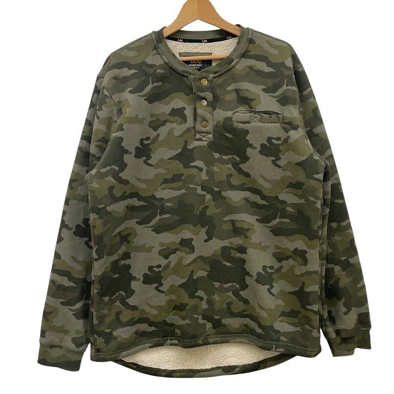 Lee リー スウェット サーマル シェルパ裏地 ヘンリーネック カモフラ柄 スウェット トレーナー プルオーバー CHINA製 Lサイズ グリーン