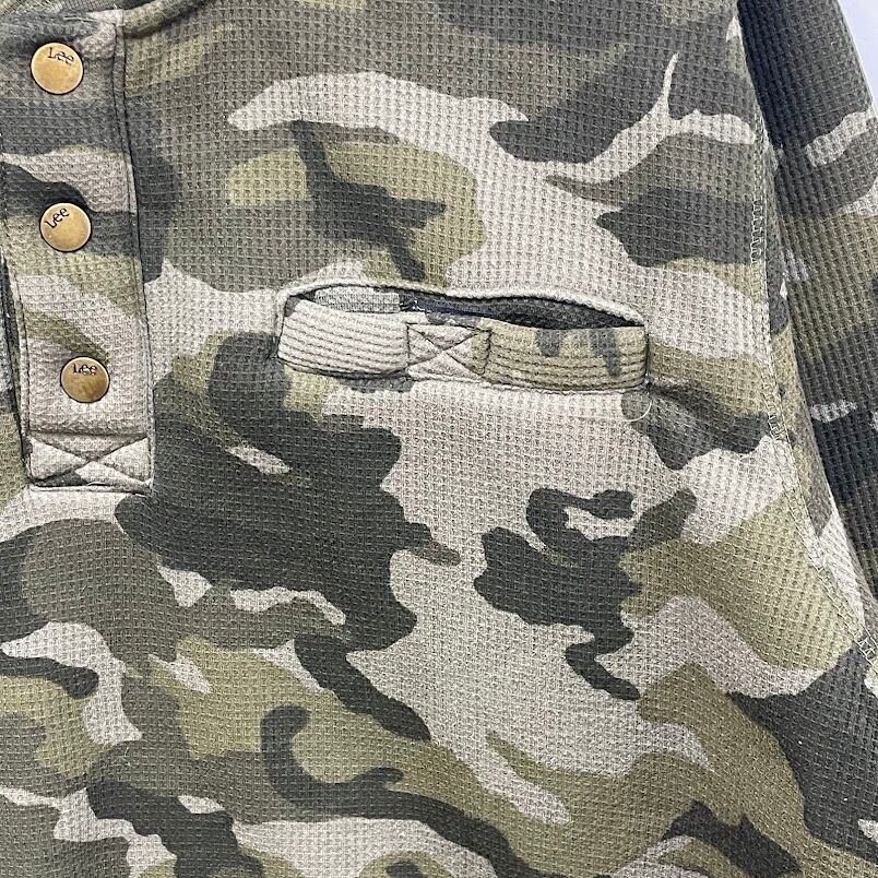 商品名:Lee リー スウェット サーマル シェルパ裏地 ヘンリーネック カモフラ柄 スウェット トレーナー プルオーバー CHINA製 Lサイズ グリーン