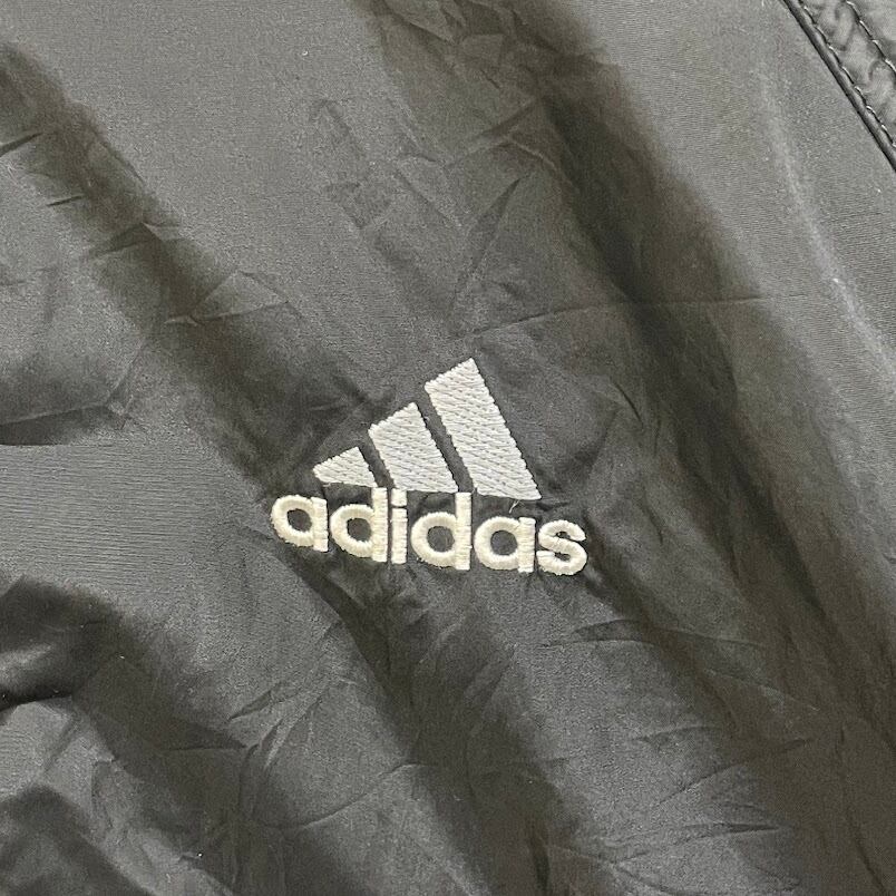 90's vintage 90年代 ヴィンテージ adidas アディダス リバーシブルジャケット スリーライン ナイロン コットン フーディー アウター ジャケット ドローコード バック刺繍 ワンポイント刺繡 マレーシア製 Lサイズ ブラック グレー | OASISCLOTHING 海外古着屋【公式】通販サイト