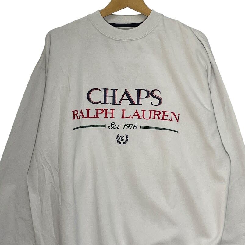 90's/90年代 CHAPS/チャップス RALPH LAUREN/ラルフローレン スウェット トレーナー フロント刺繍 PAKISTAN製 メンズ M ホワイト | OASISCLOTHING 海外古着屋【公式】通販サイト