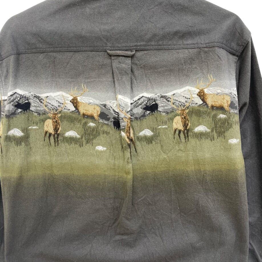 00's 00年代 ヴィンテージ vintage Cabela's カベラス DEERSKIN SOFT CHAMOIS シャツ 鹿プリント アニマル 長袖シャツ ボタンダウン フロント バックプリント PERU製 Sサイズ グレー | OASISCLOTHING 海外古着屋【公式】通販サイト